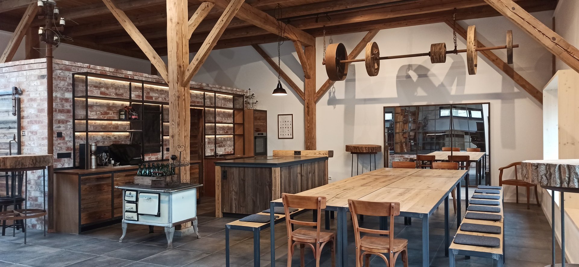 Der weitläufige Raum im Industrie-Design schafft die ideale Kulisse für Ihre Kurse, Workshops, Kunst-ausstellungen, Firmenschulungen, QiGong (auch Outdoor möglich), Meeting, Teambuilding etc. in kleinen Gruppen.