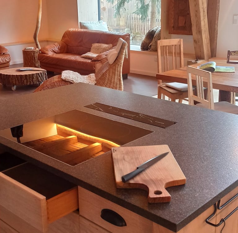 Küche komplett ausgestattet (Cerankochfeld, Spülmaschine, Filter-Kaffeemaschine, Wasserkocher)